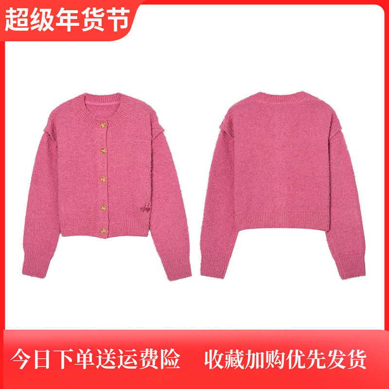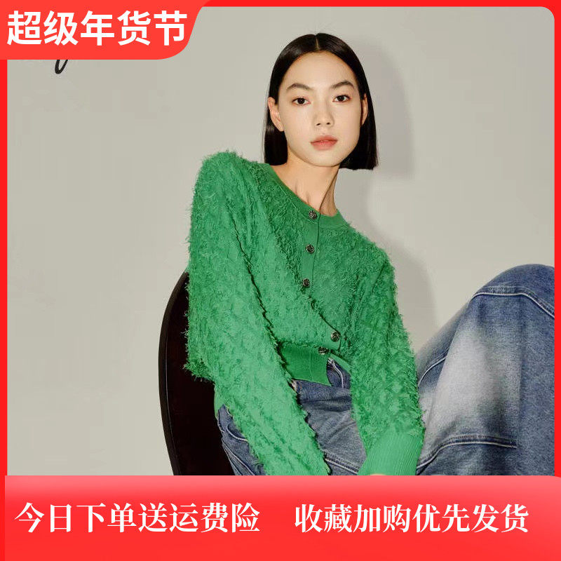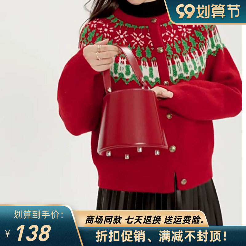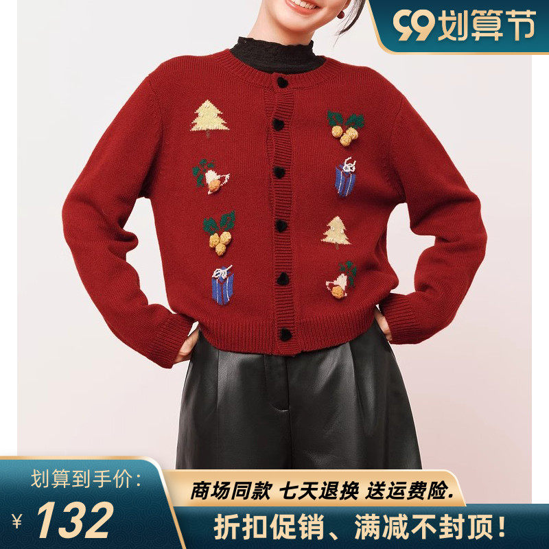 商场同款简尚伊芙丽圣诞风毛衣女圆领复古甜美高级感显瘦针织开衫