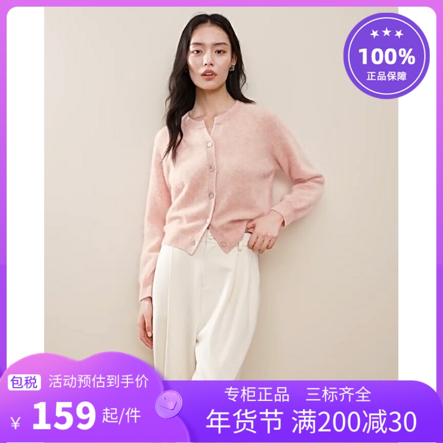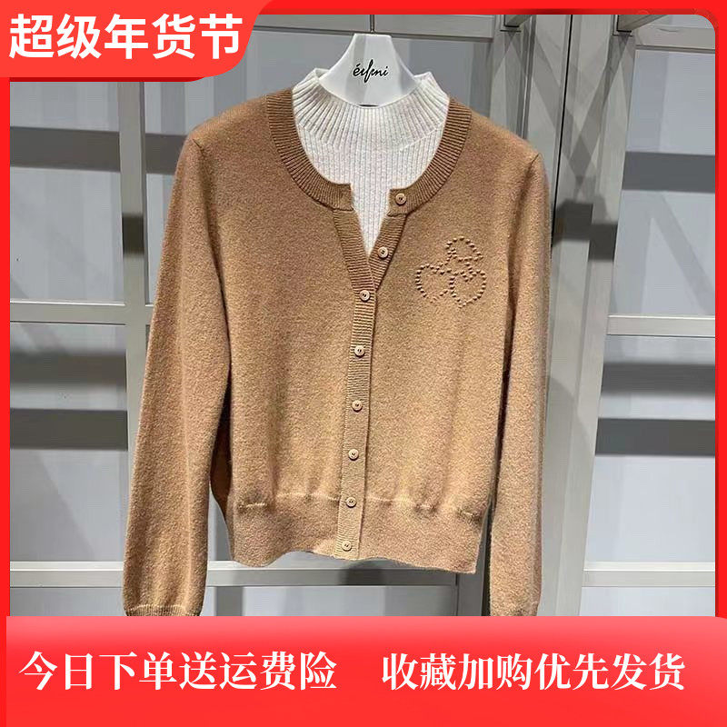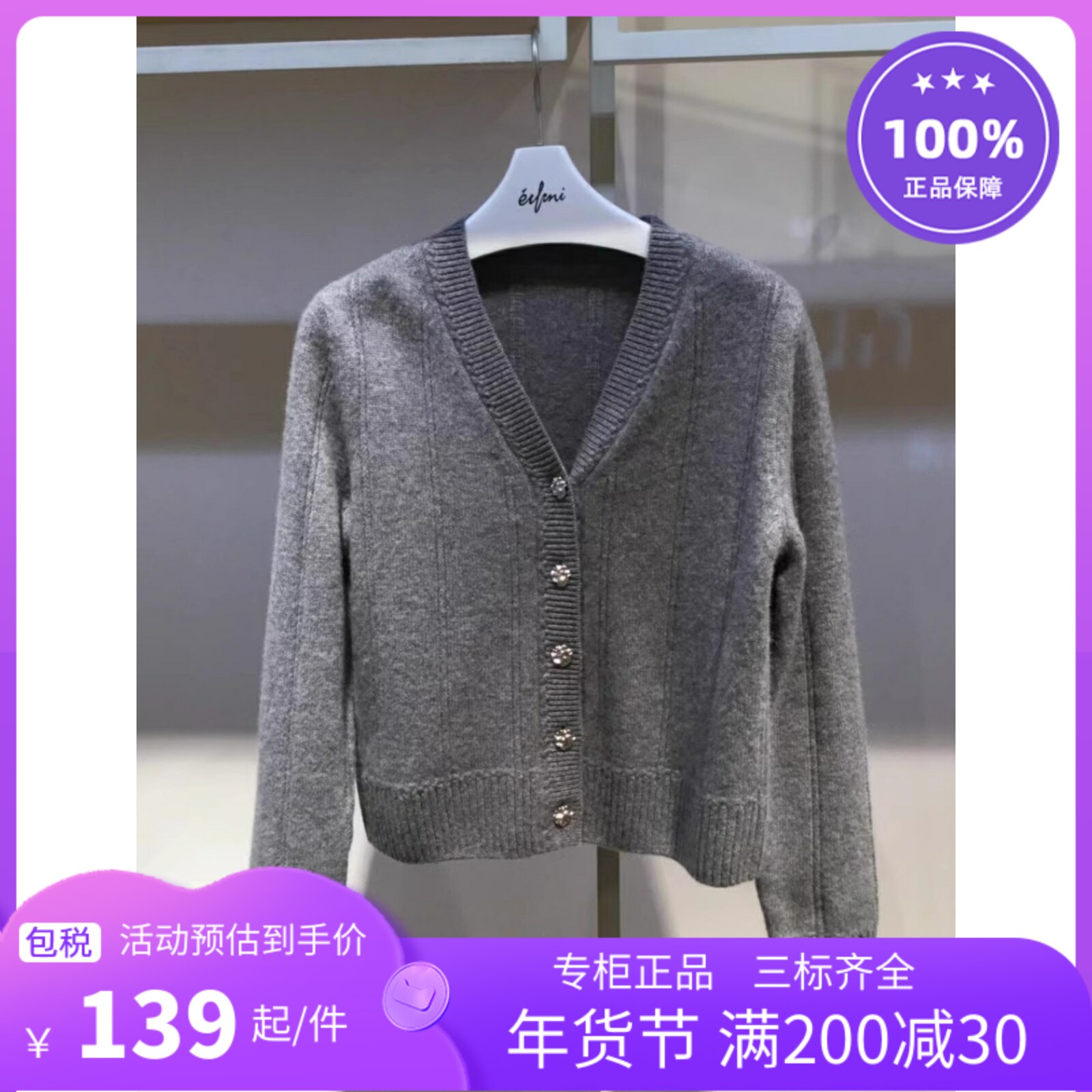 伊芙丽2023秋季新款温柔气质简约羊绒衫开衫针织衫1E9933351Q