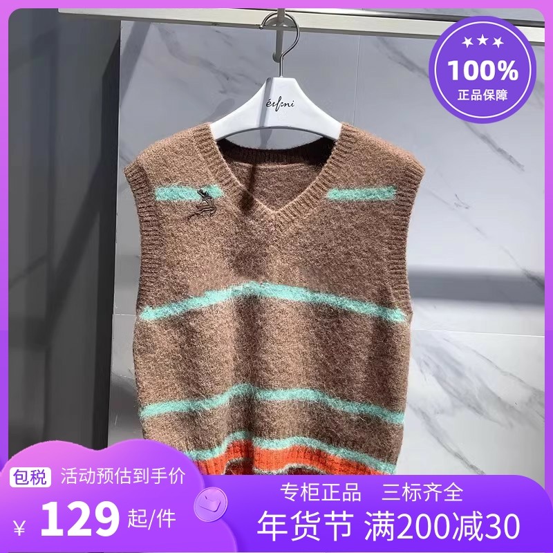 Eifini/伊芙丽2023冬新品无袖V领针织衫女条纹马甲背心1EC132161