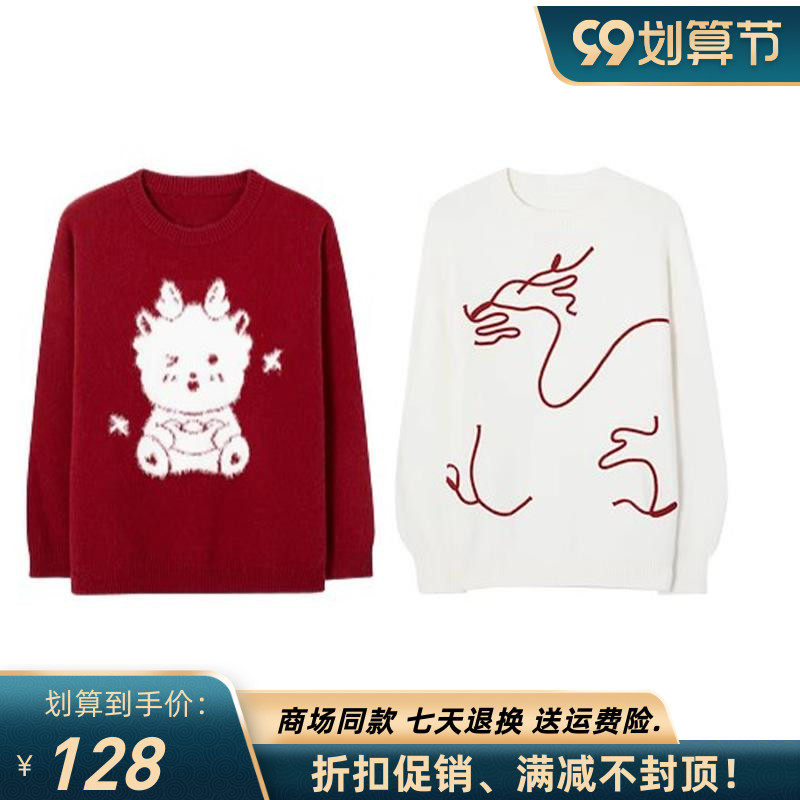 商场同款简尚伊芙丽圣诞红色本命年龙年衣服刺绣针织衫女跨年战服