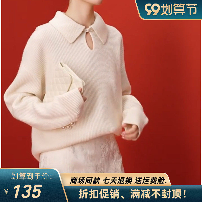商场同款简尚伊芙丽新中式盘扣OL设计感羊毛针织衫上衣女新年战袍