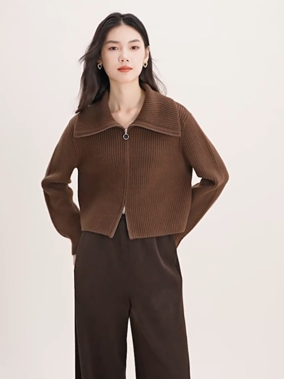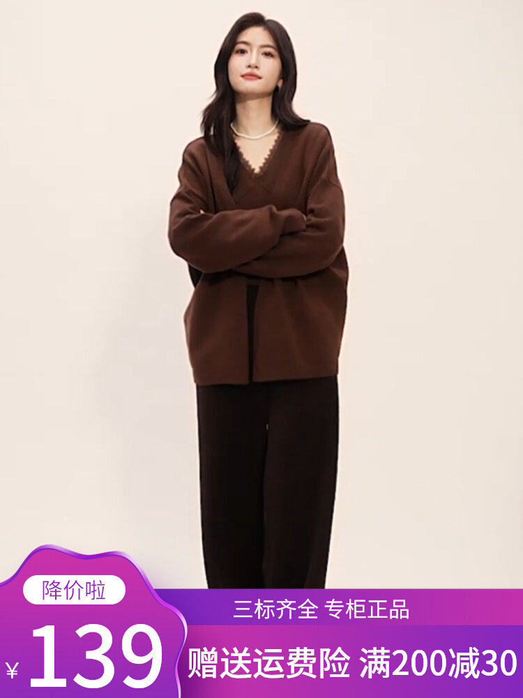 伊芙丽咖啡色美拉德秋日穿搭针织开衫女2023冬装新款慵懒感针织衫