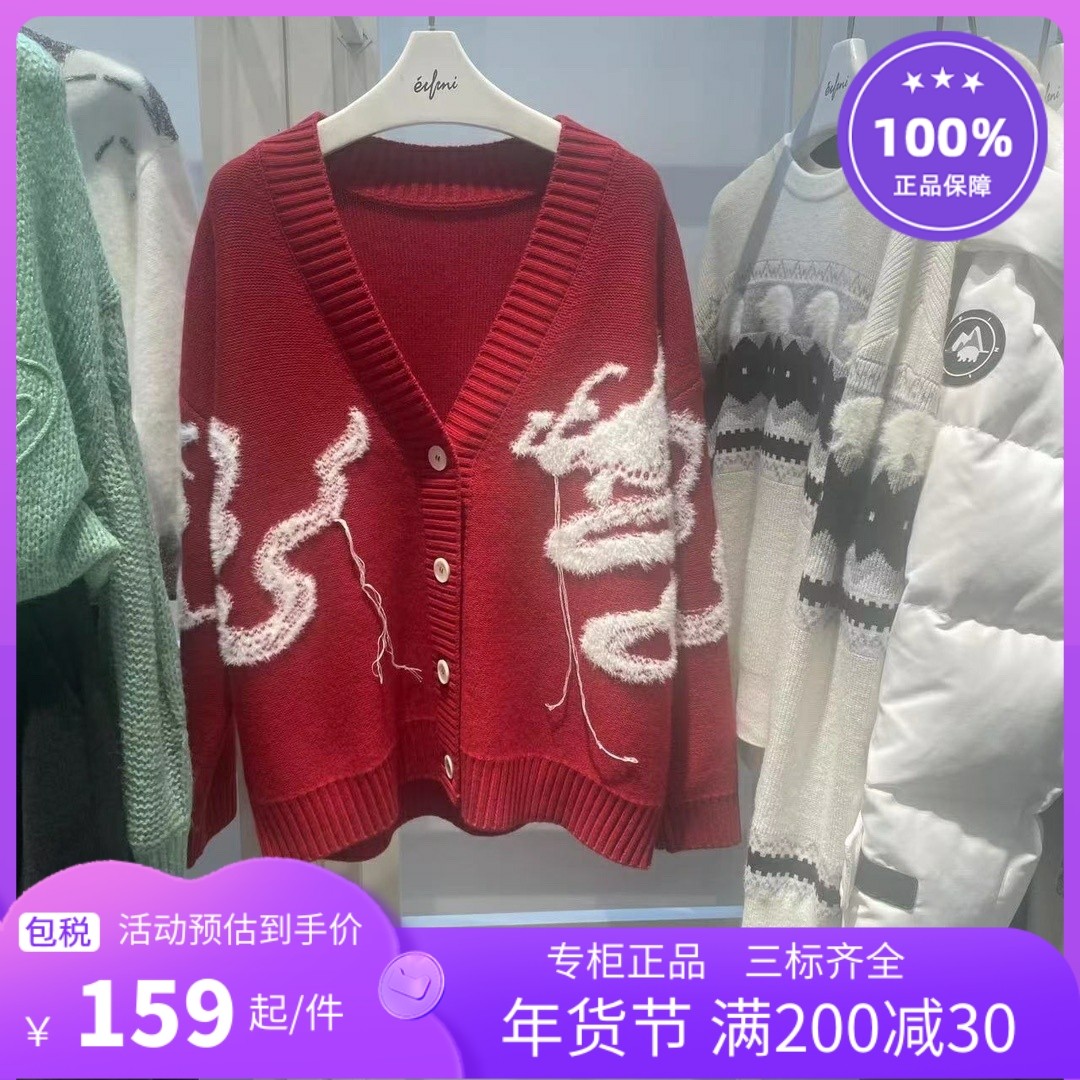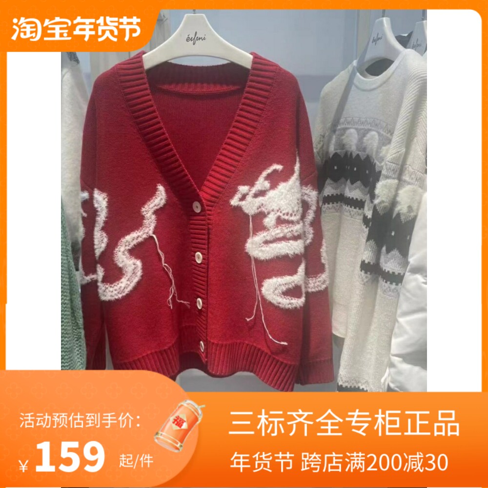 Eifini/伊芙丽新年圣诞红色羊毛拉链针织开衫2023冬上衣1EC934591