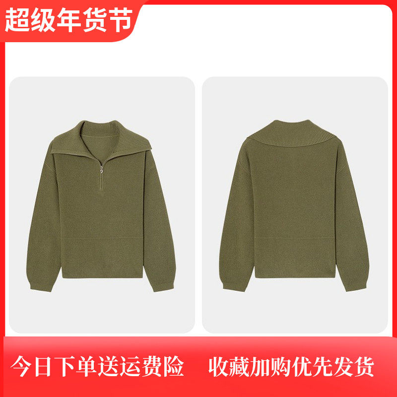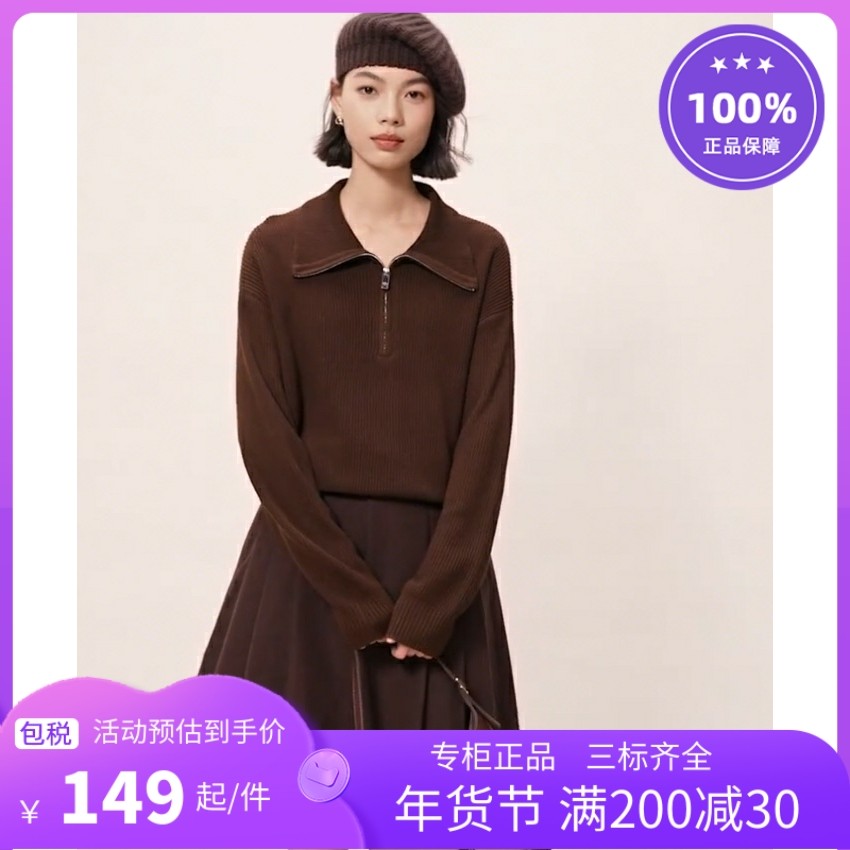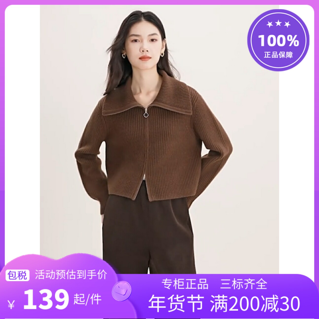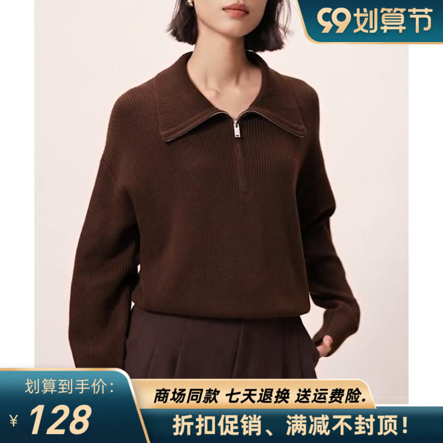 【商场同款】伊芙丽2022冬装大翻领拉链宽松百搭针织衫1DA332132