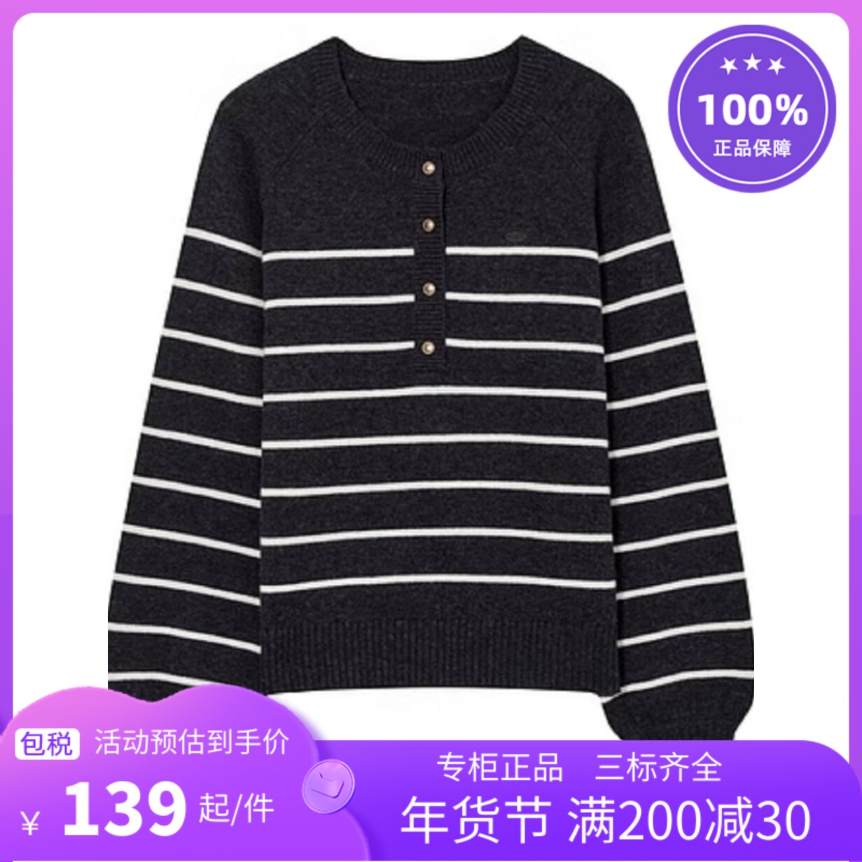 【商场同款】伊芙丽条纹气质百搭毛针织衫2023冬季新款1EA132213