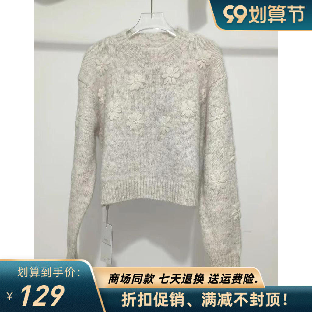 商场同款简尚伊芙丽米白绣花针织衫2023流行洋气减龄软糯套头衫女