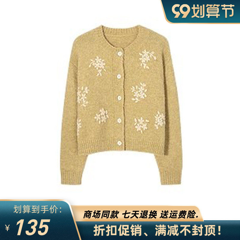 商场同款简尚伊芙丽新款绣花针织开衫多巴胺洋气小香风花朵上衣女