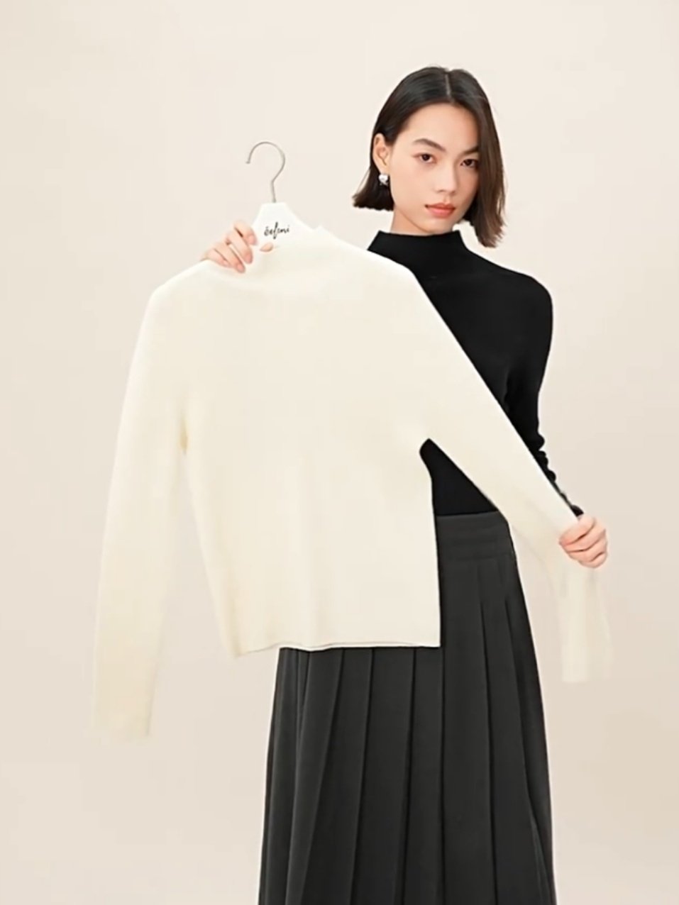 【美利奴羊毛】伊芙丽半高领无缝加厚针织打底衫女2023秋基础毛衫