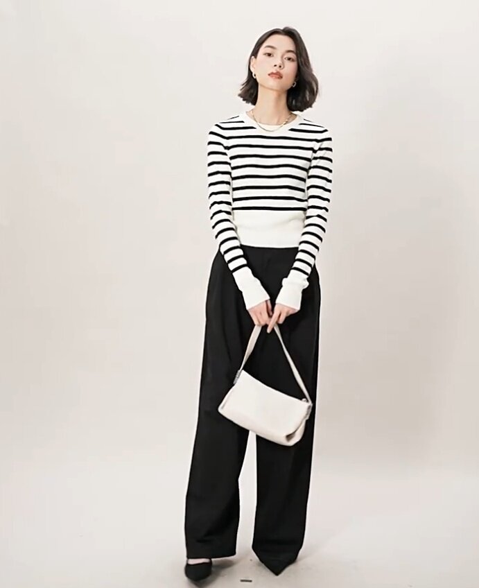Eifini伊芙丽2023秋新款撞色条纹高级感针织打底衫毛衫1E8931301