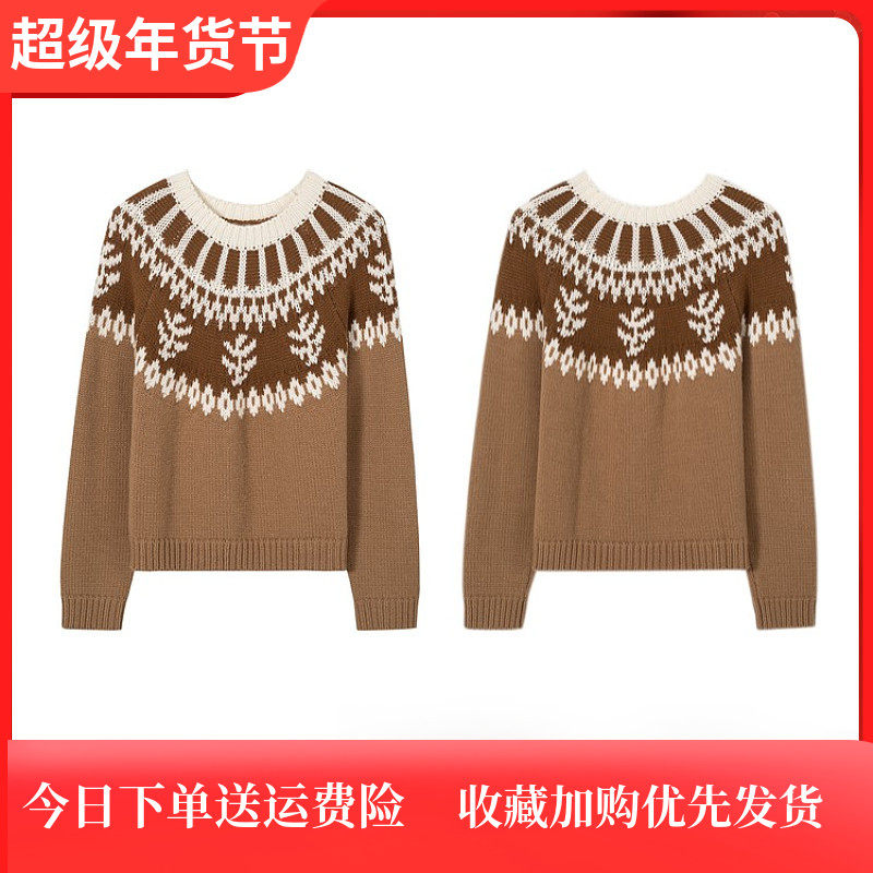 【明星同款】伊芙丽圣诞风设计感费尔岛提花针织衫女2023冬装毛衣