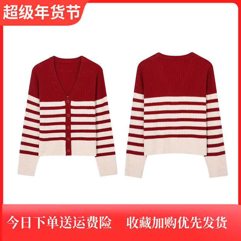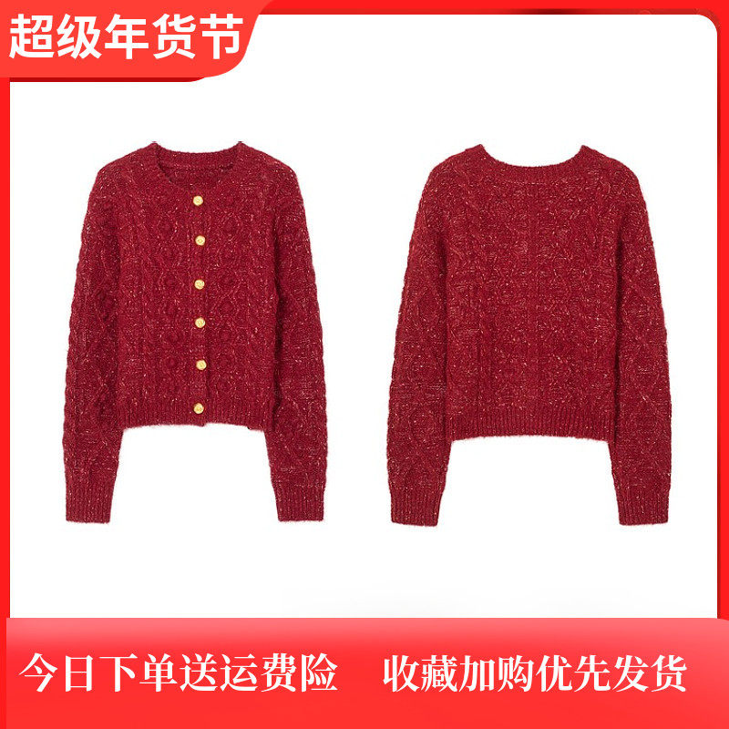 伊芙丽千金风红色新年圣诞风气质针织开衫女2023冬装毛衣上衣女