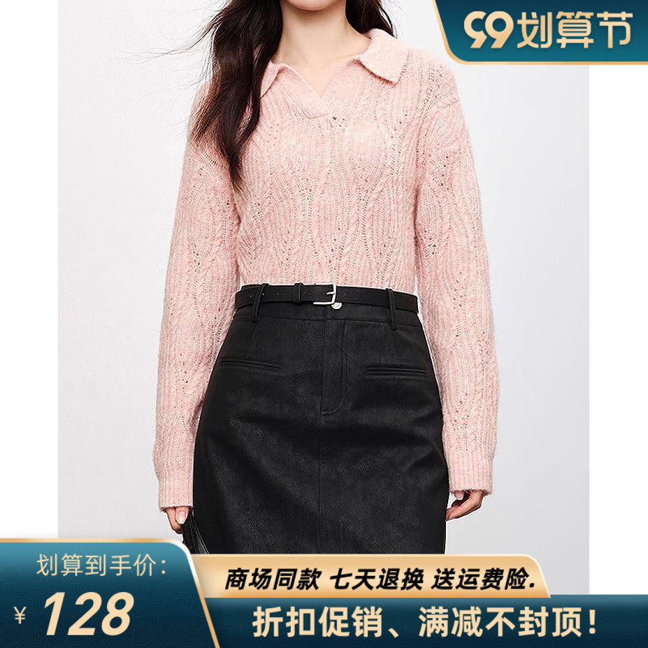 商场同款简尚伊芙丽高级感毛衣春季2024女装绞花polo领甜美针织衫
