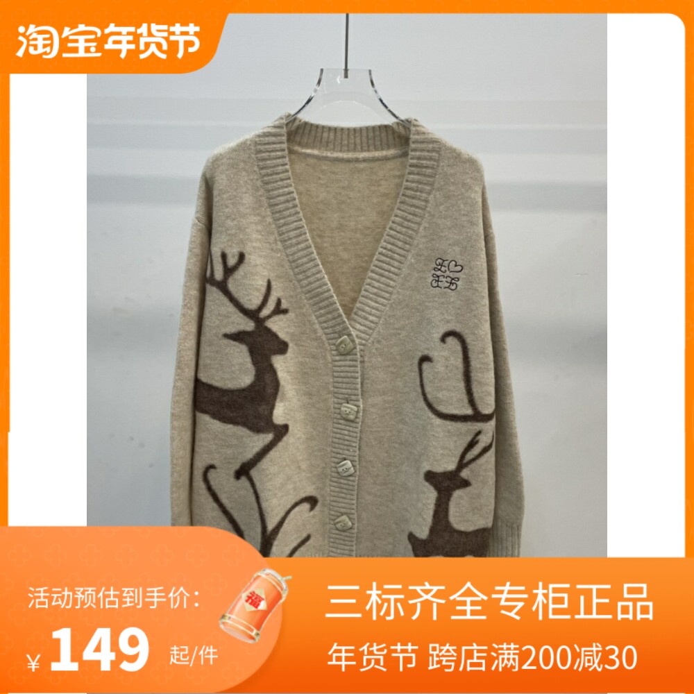 商场同款简尚伊芙丽2024春季新款圣诞节小香风针织开衫毛衣外套女