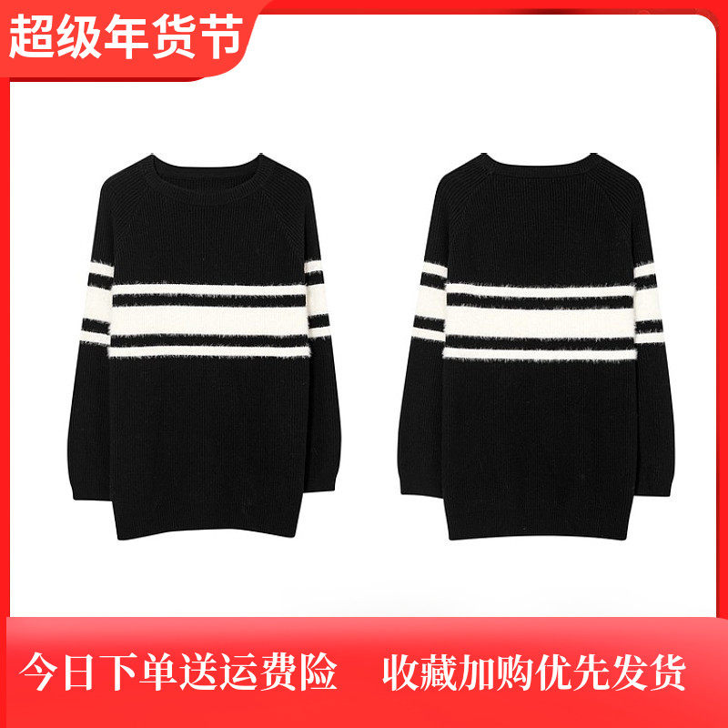 【商场同款】伊芙丽撞色拉绒条纹设计感宽松针织衫23冬1EA332291