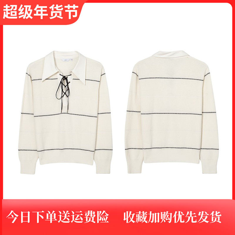 【商场同款】伊芙丽设计感系带POLO翻领针织衫2023秋冬1EA131921