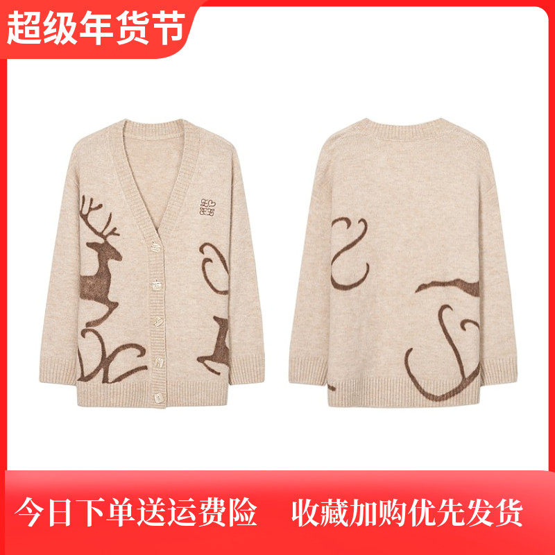 【商场同款】伊芙丽麋鹿印花针织衫女2023冬装1EC132141