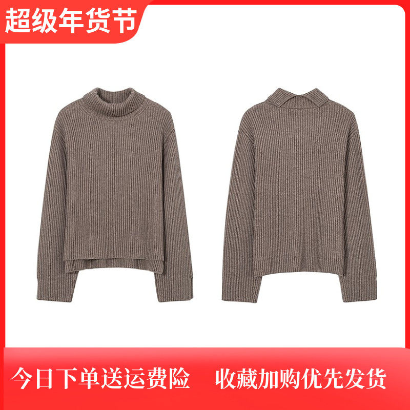 伊芙丽2023冬装新款时尚卡其色翻领针织衫套头毛衣1EA333111G