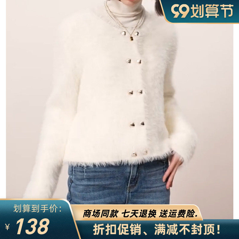 孙怡同款简尚伊芙丽OL气质白月光千金感仿貂毛气质针织开衫外套女