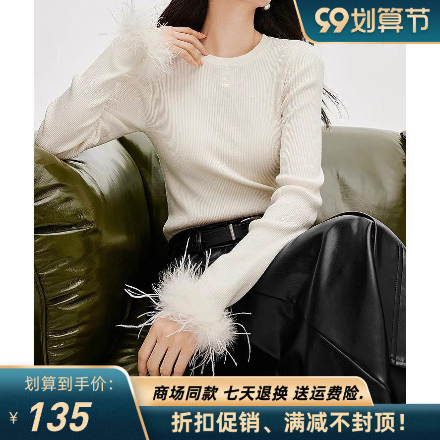 商场同款简尚伊芙丽白色毛衣春季2024女装打底毛针织衫冷淡系上衣