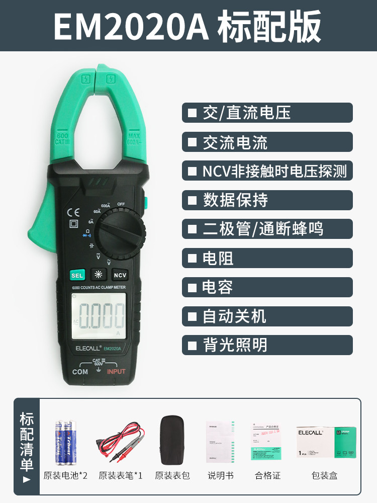 伊莱科EMAX5万用表维修电工多功能电阻小型家用便携防烧高精度