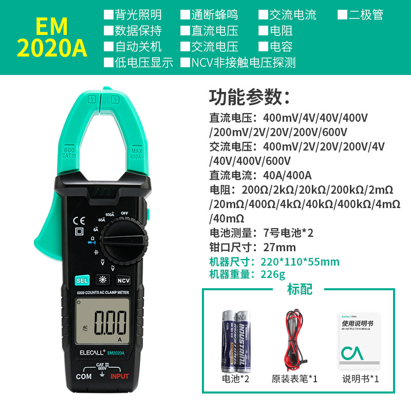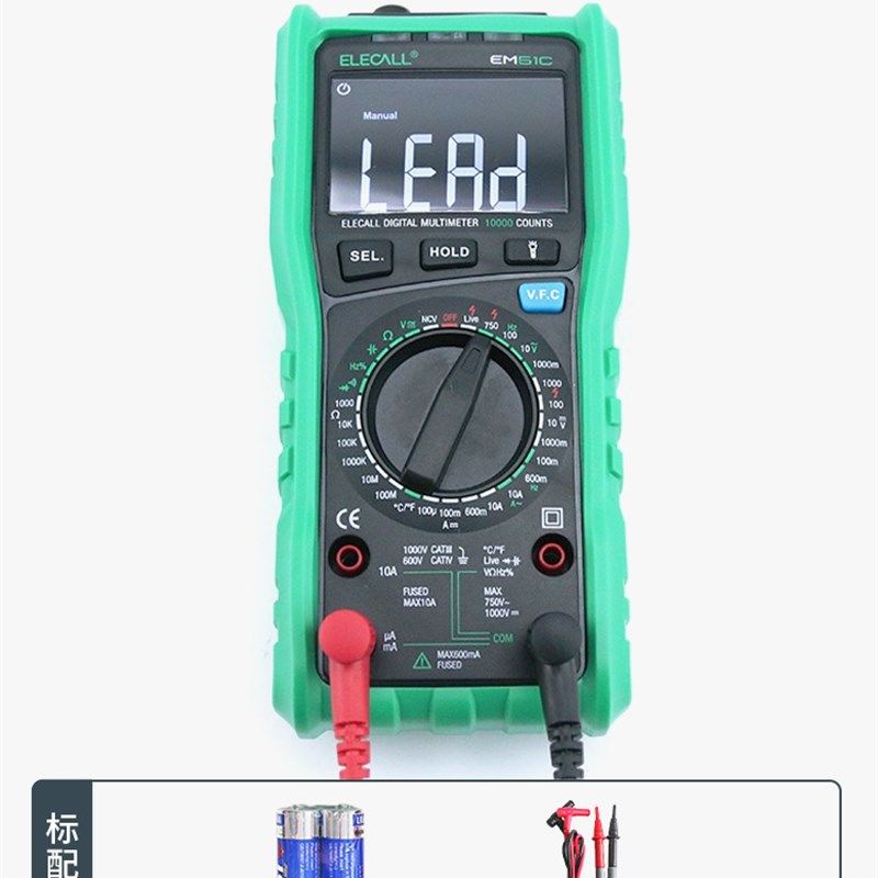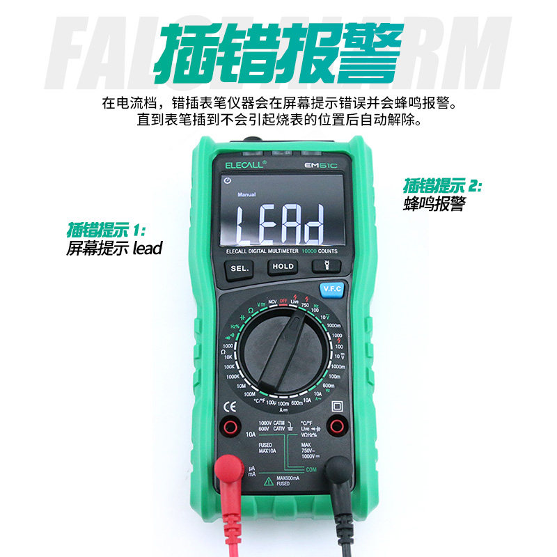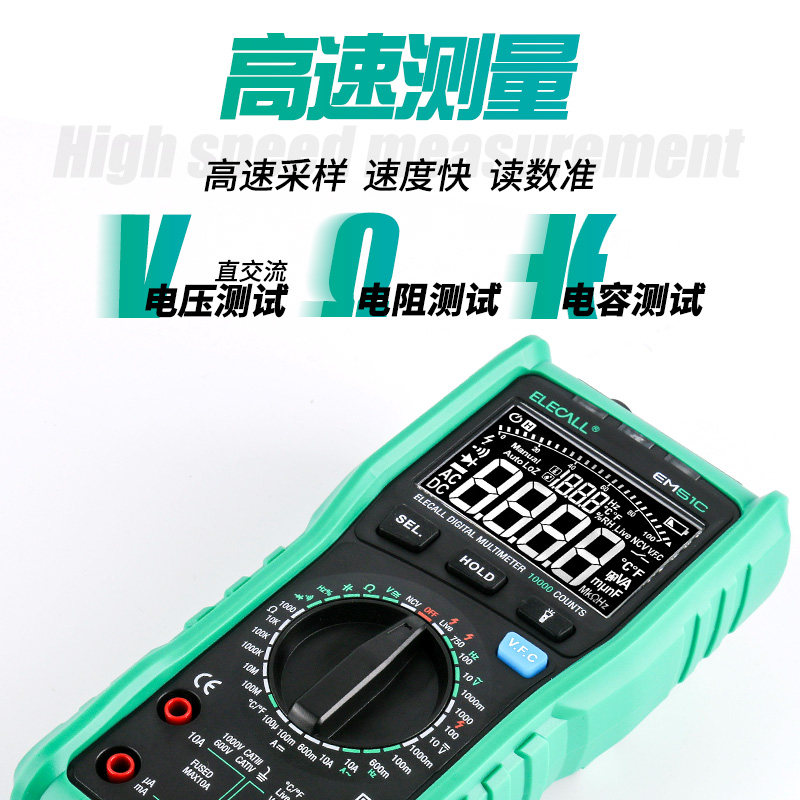 新品伊莱科数显万用表EM51C数字E背光防烧高速电工高精度多功能万