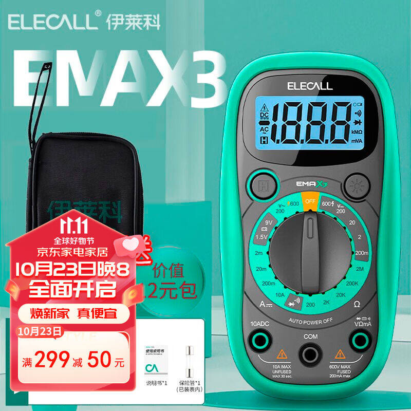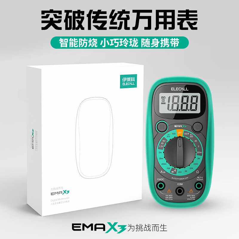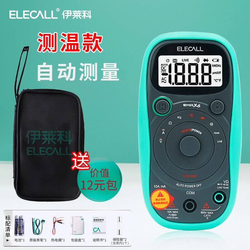 伊莱科ELECALL万用表智能家用数字自动测量测温迷你万用表EMAX6