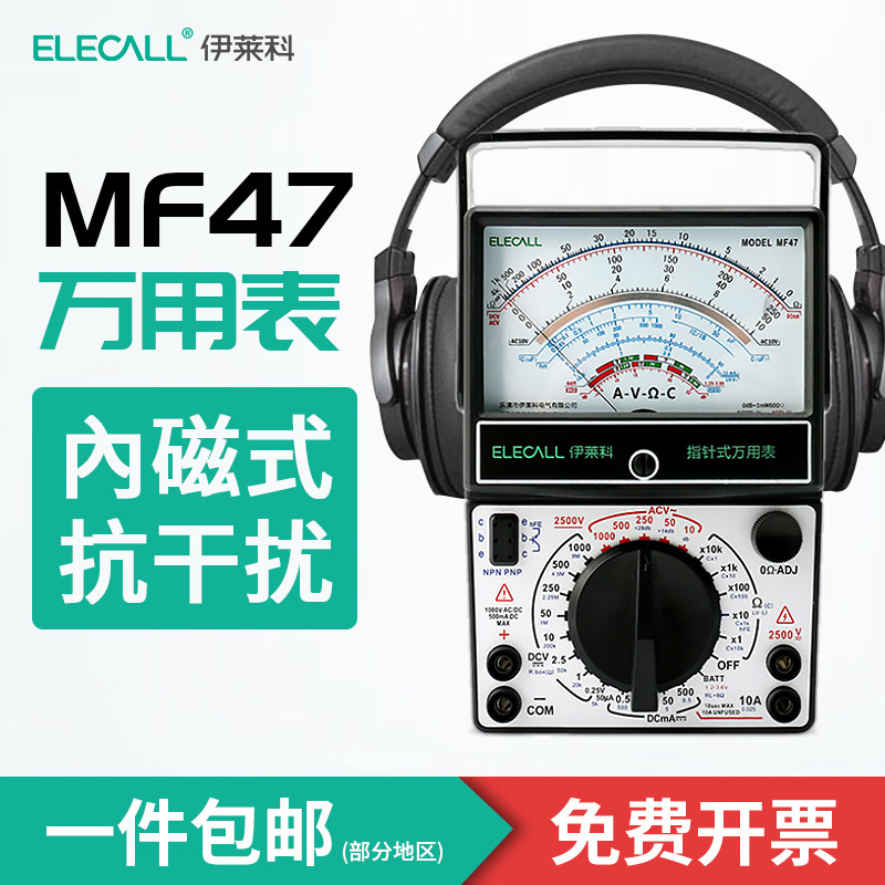 定制伊莱科指针式万用表MF47内磁式多重电路保护机械表表笔电工万
