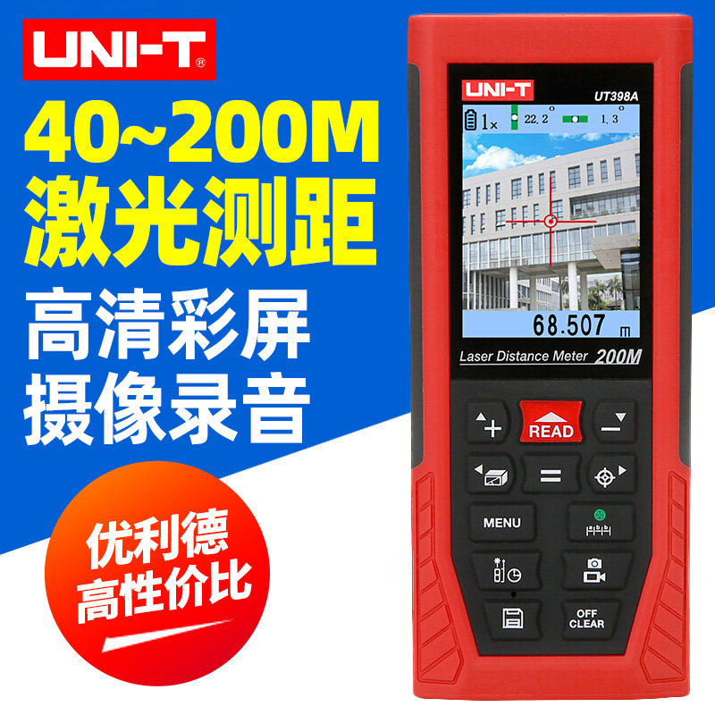 优利德高精度测距仪200米激光测距仪彩屏UT398A电子尺带摄像头