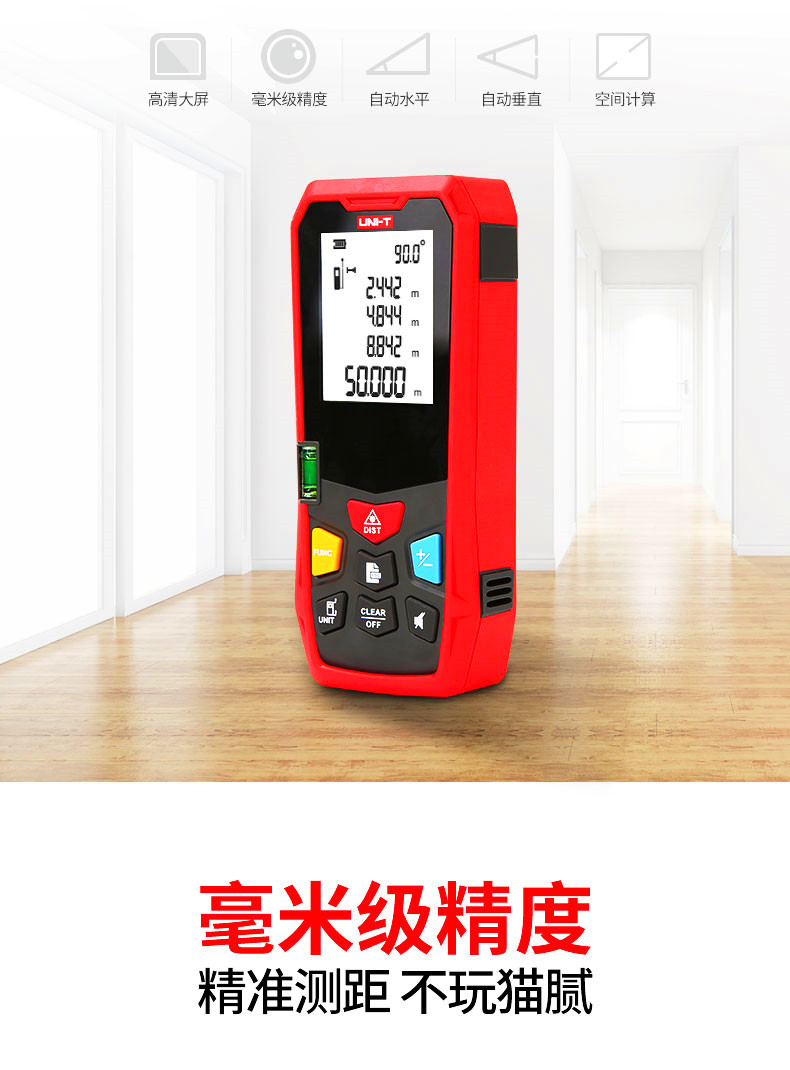 优利德(UNI-T)LM50T测距仪二合一多功能激光测量尺电子卷尺室内
