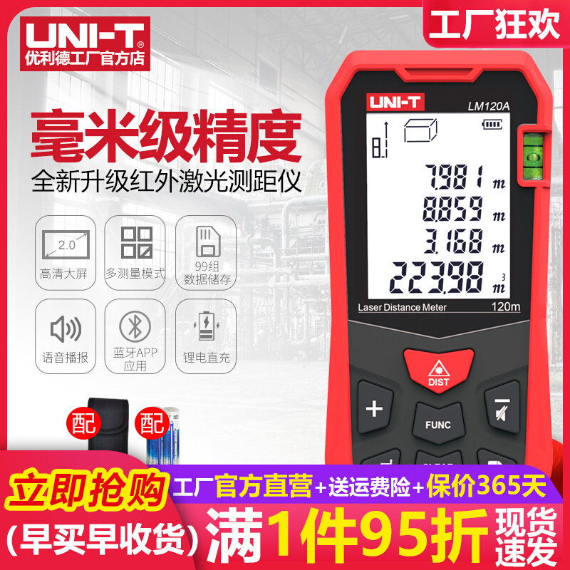优利德LM50D激光测距仪红外线电子尺高精度可测曲线蓝牙连接LM120