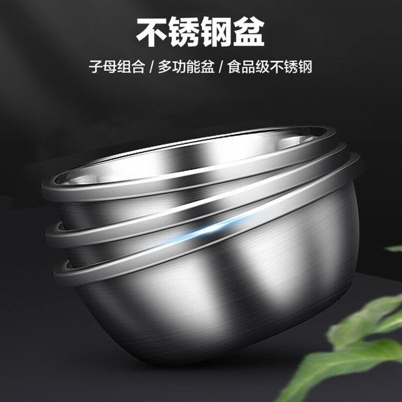 优勤不锈钢盆三件套厨房加深调料盆家用洗菜盆和面盆加大加厚味斗