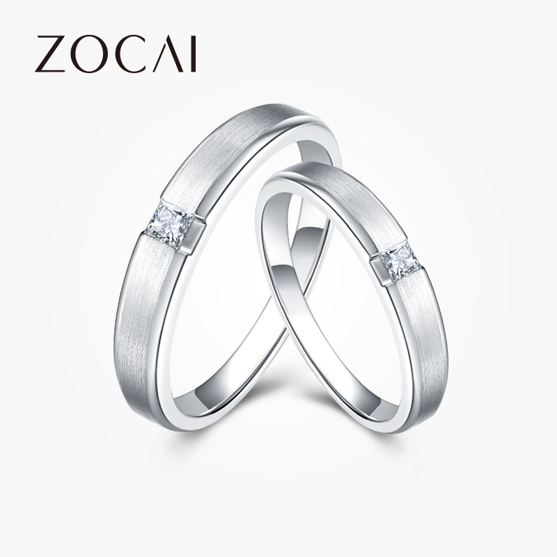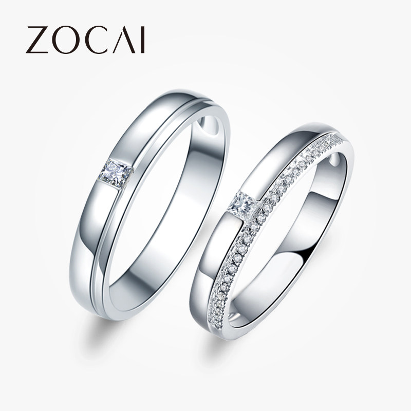 佐卡伊 白18K金情侣钻戒公主方形钻石结婚订婚对戒男戒女戒新品