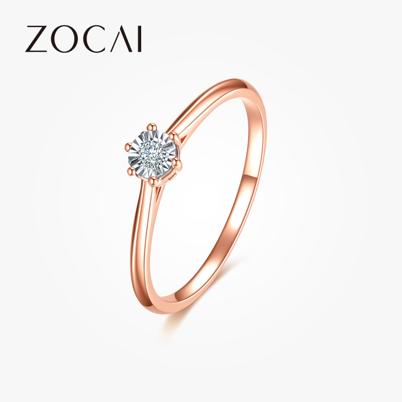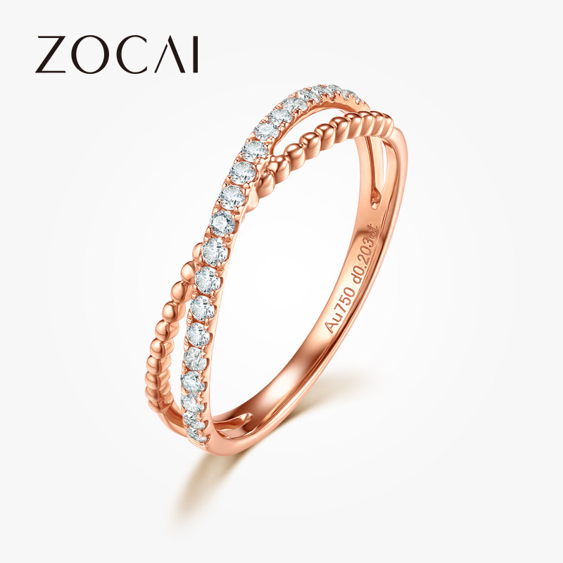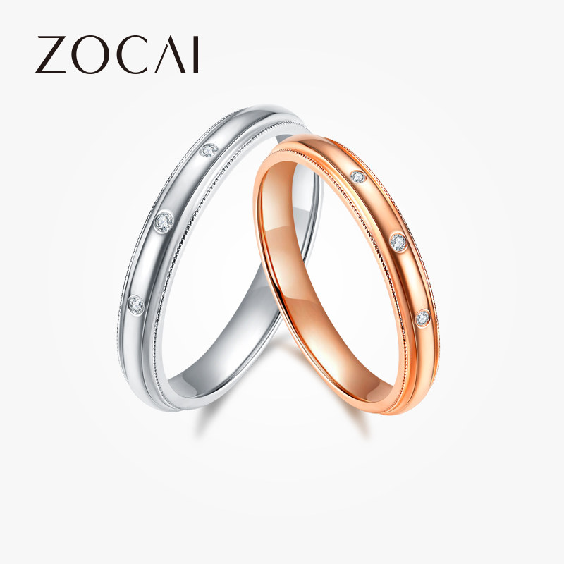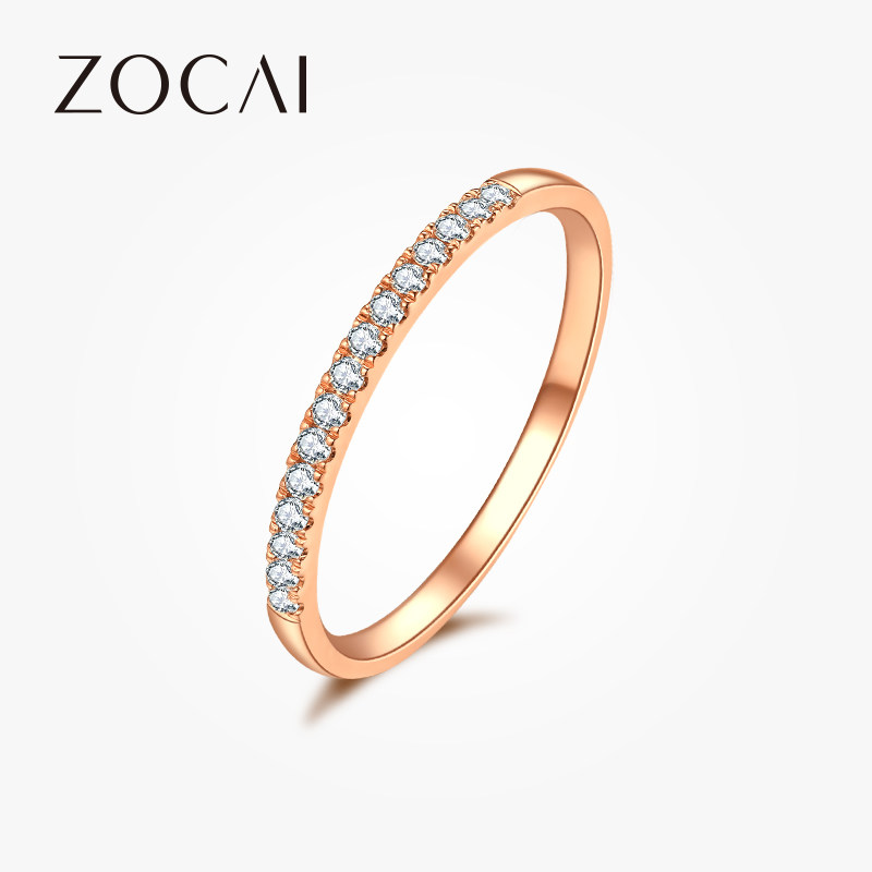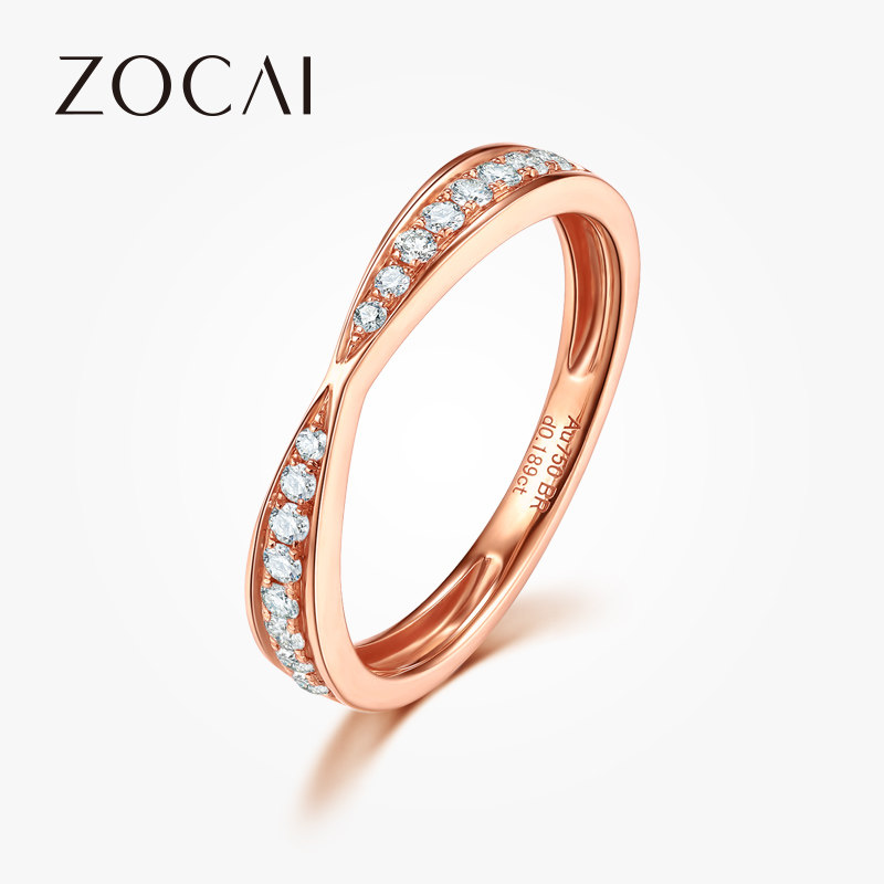 佐卡伊18k玫瑰金对戒排钻戒指au750彩金排戒钻戒时尚钻石对戒真钻