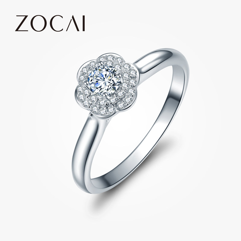 佐卡伊 花神FLORA 白18k金钻石戒指女士六爪显钻求婚结婚珠宝钻戒