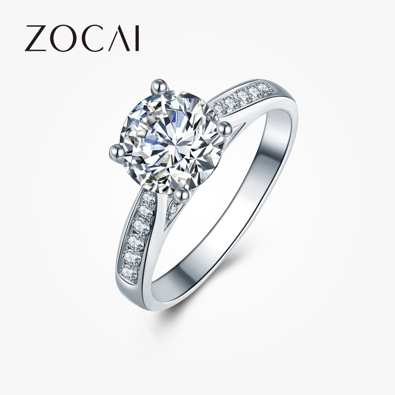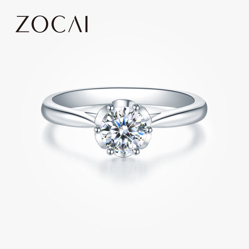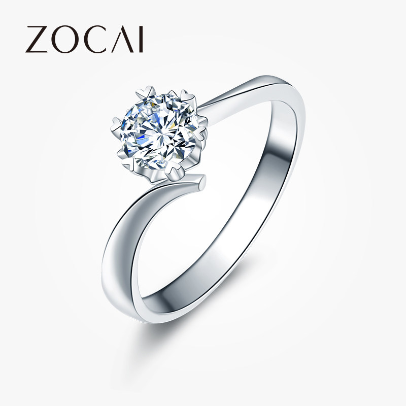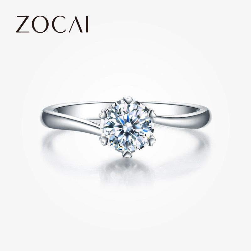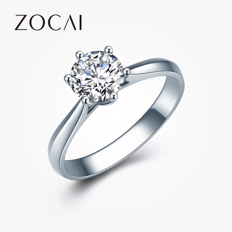 佐卡伊钻戒女六爪铂金单钻女戒一克拉钻戒白金钻石求婚结婚戒指女
