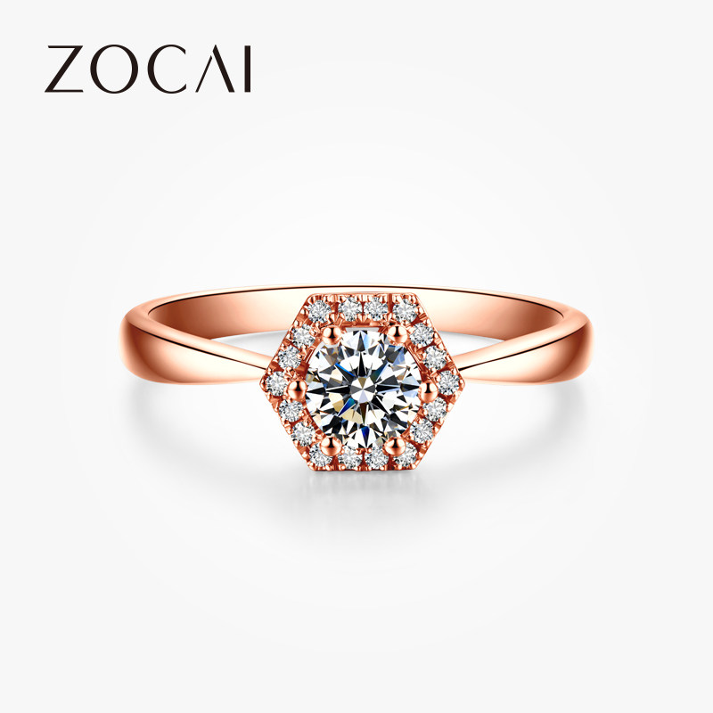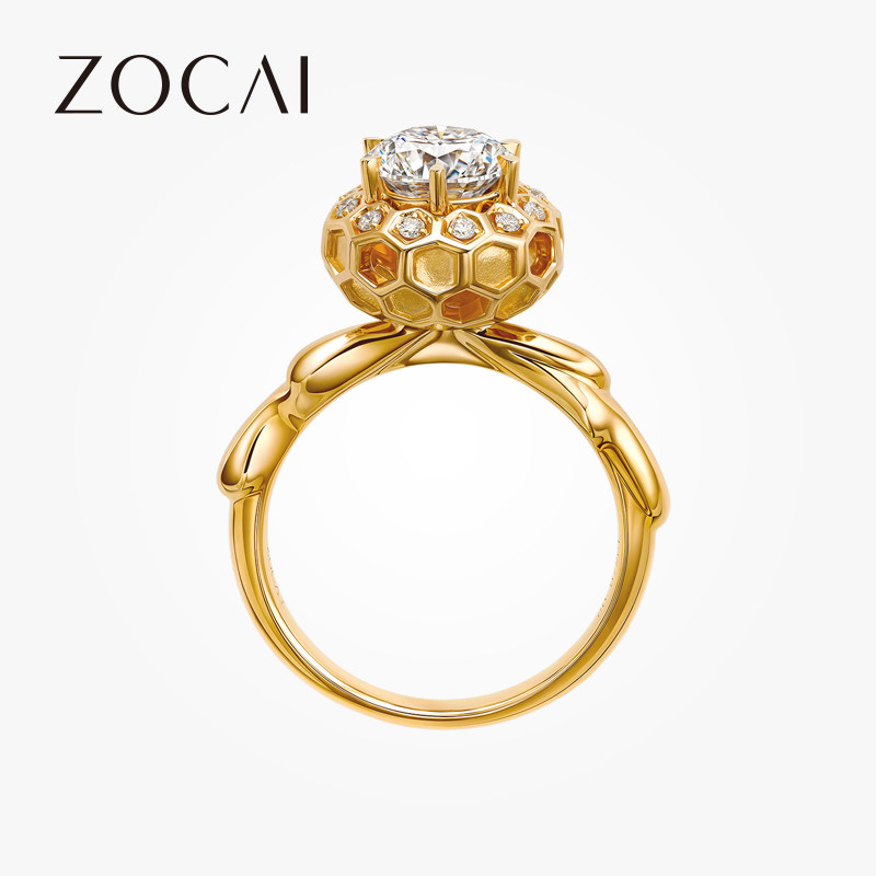 佐卡伊 巢 黄18k金蜂巢钻戒女结婚戒指时尚设计求婚订婚钻石女戒