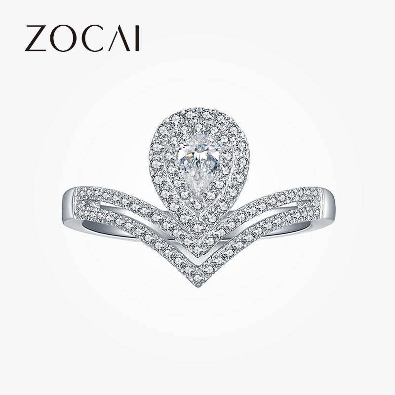 佐卡伊 白18k金豪华群镶钻戒50分水滴形钻石戒指女求婚结婚正品