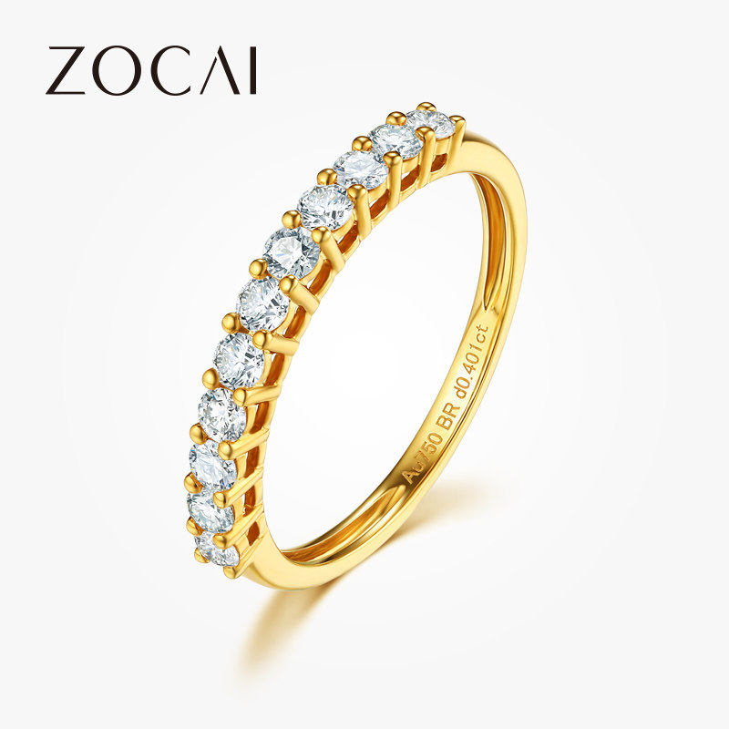 佐卡伊 18k排钻戒指指环排镶钻戒au750镶钻群镶钻石排戒满钻真钻