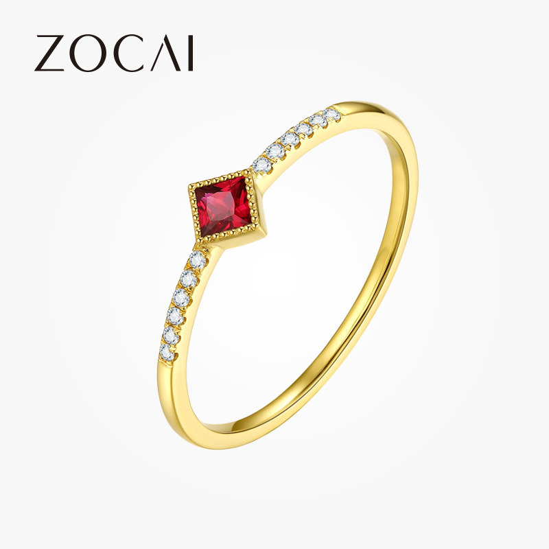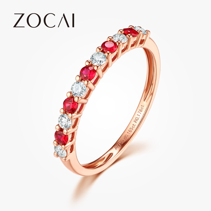 佐卡伊 玫瑰18K金钻石女戒红宝石钻石排镶钻戒新品订婚送礼珠宝