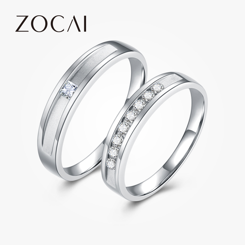 佐卡伊 影视 明星同款白金情侣对戒钻石戒指结婚订婚钻戒婚戒珠宝