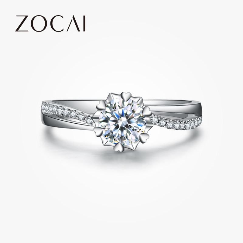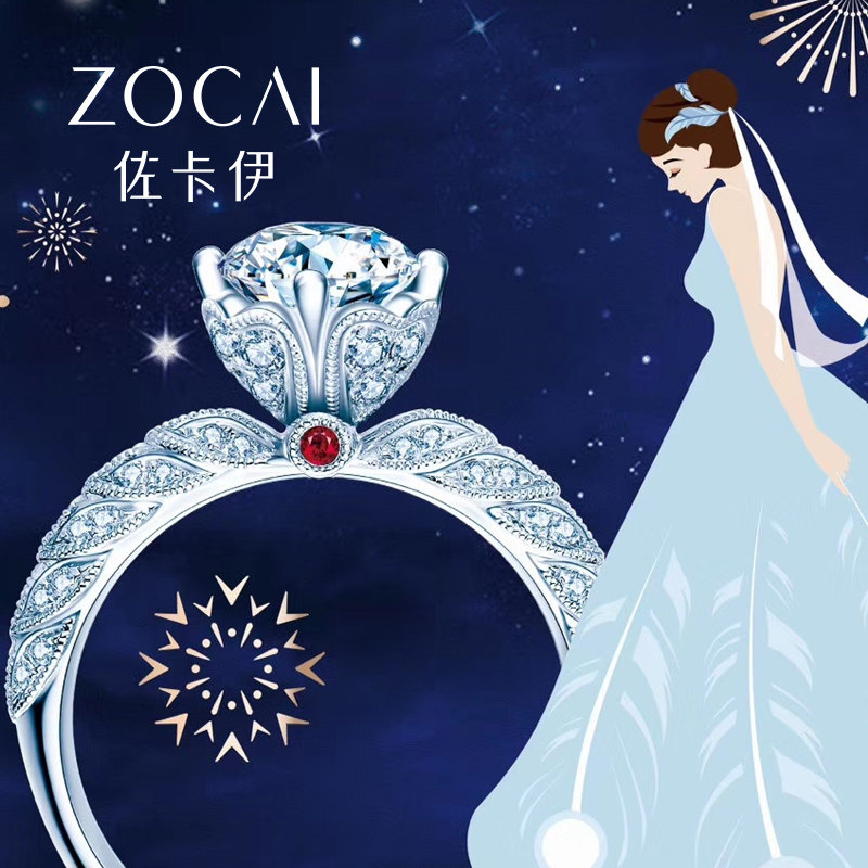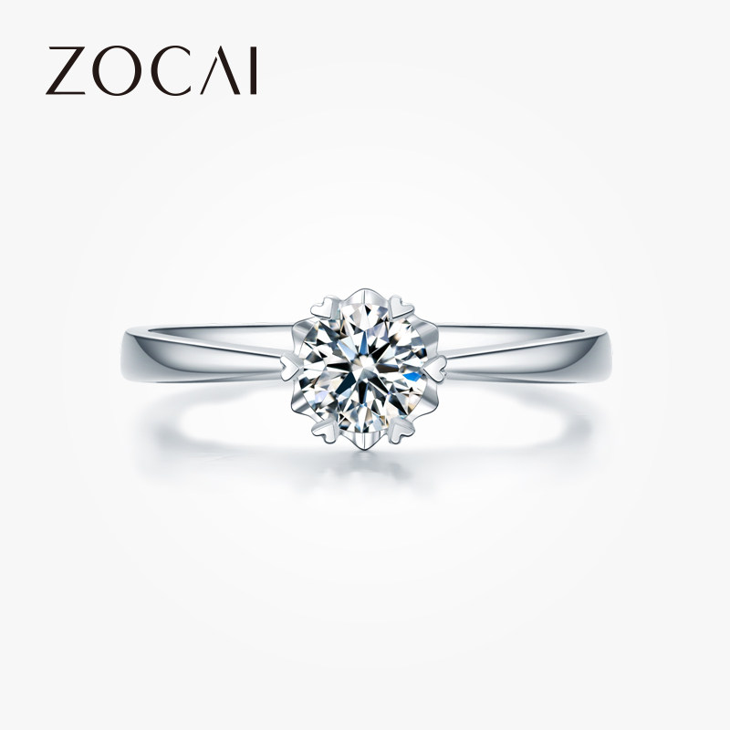 佐卡伊 纯情 经典铂金六爪雪花款钻戒女正品珠宝求婚结婚钻石戒指