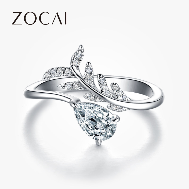佐卡伊 白18k金水滴形钻戒求婚结婚戒指异形钻石女士婚戒正品珠宝