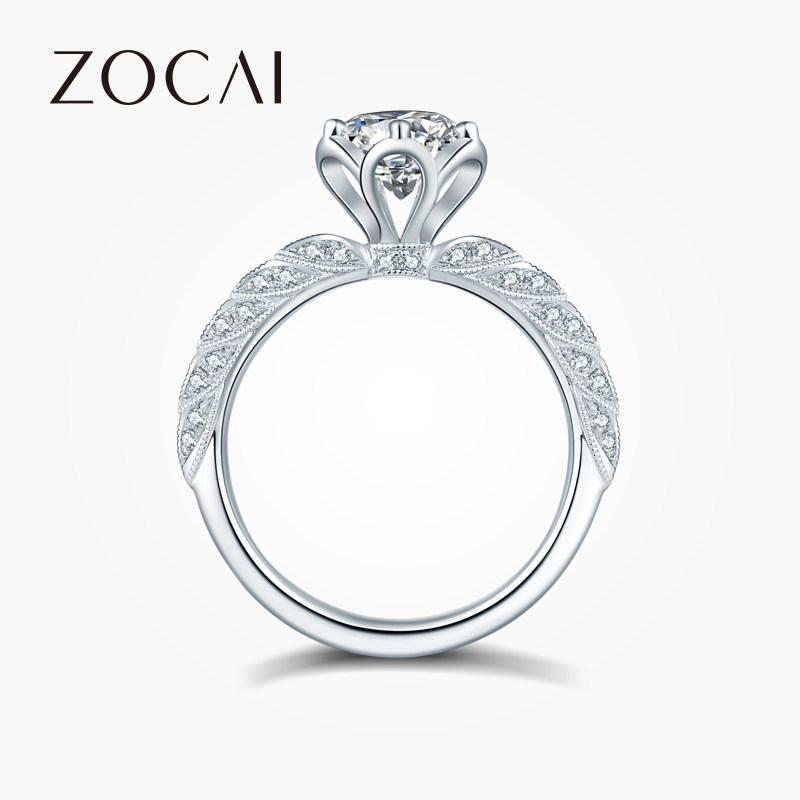 佐卡伊 纯粹白18K金六爪显钻女士戒指钻石30分50分求婚结婚钻戒