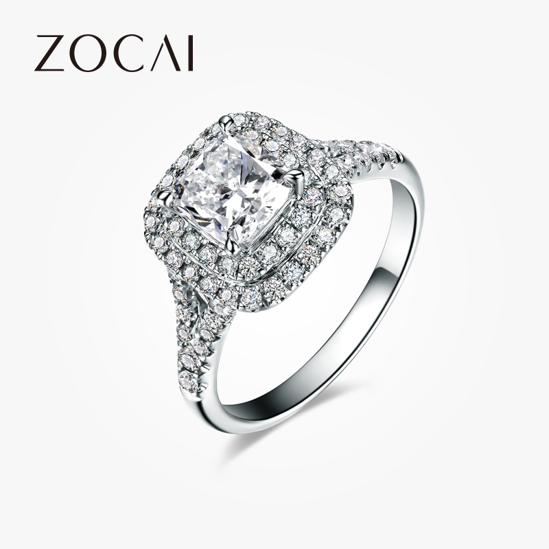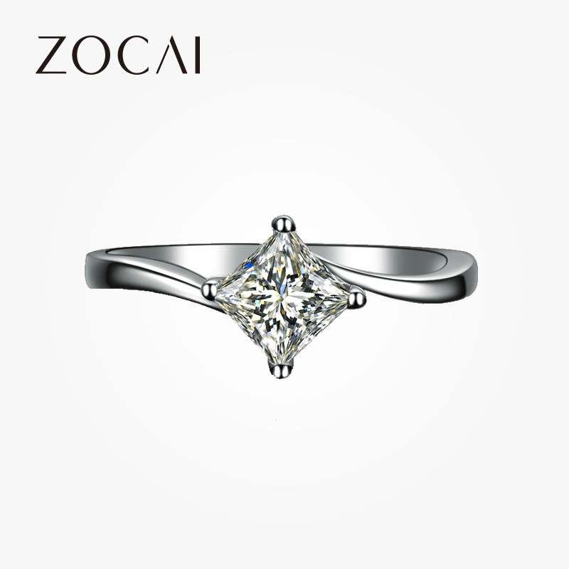 佐卡伊 白18K金钻戒公主方钻石戒指求婚结婚女士婚戒显钻单钻珠宝
