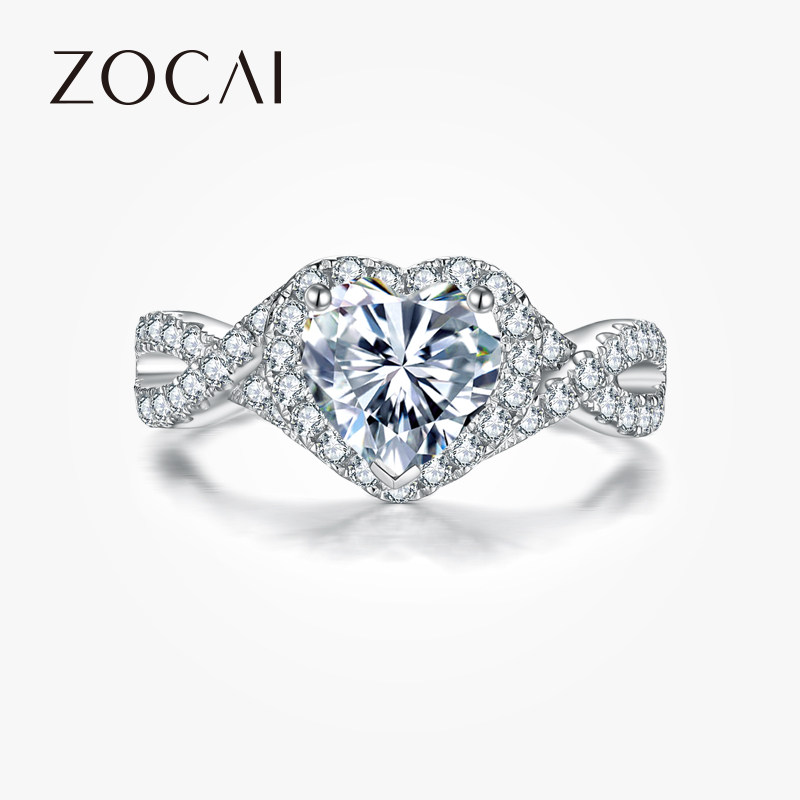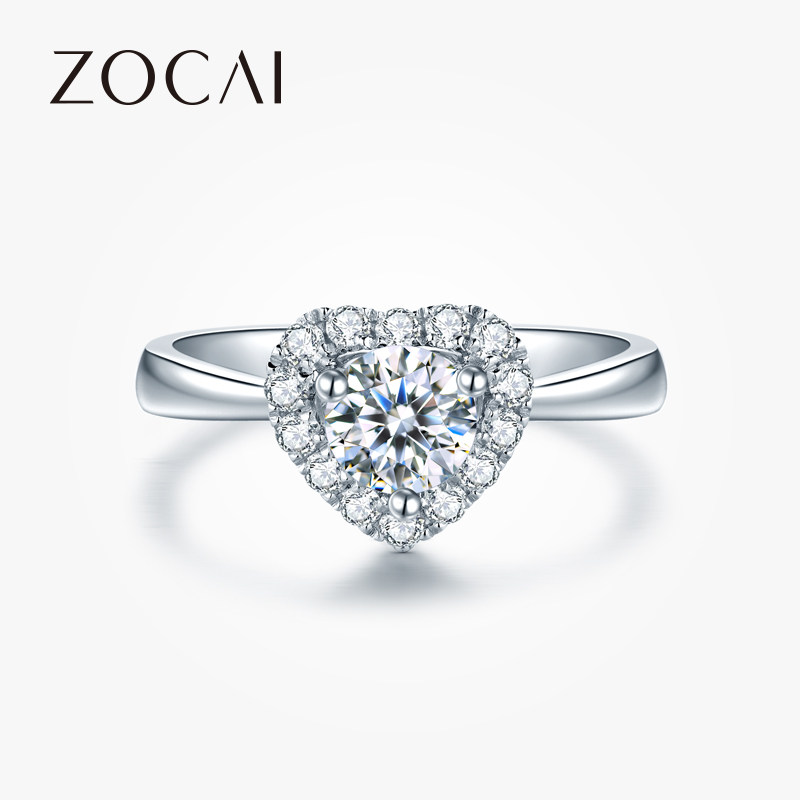 佐卡伊 怦然心动白18k心形钻戒女异形50分1克拉求婚结婚钻石婚戒