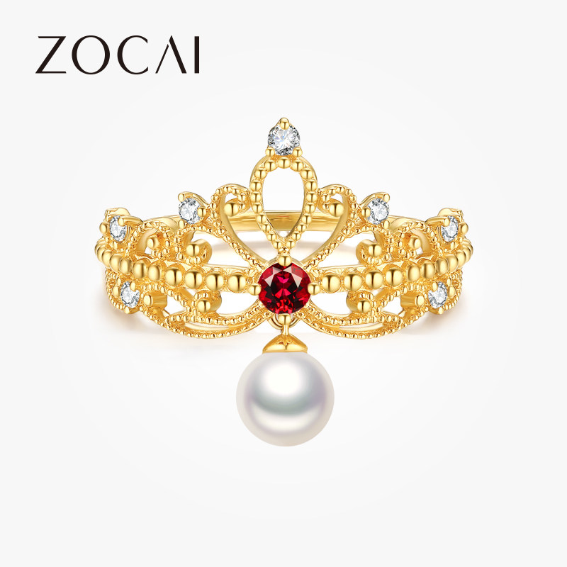 佐卡伊 黄18K金钻石戒指花丝镶钻皇冠公主钻戒女士求婚珠宝新品