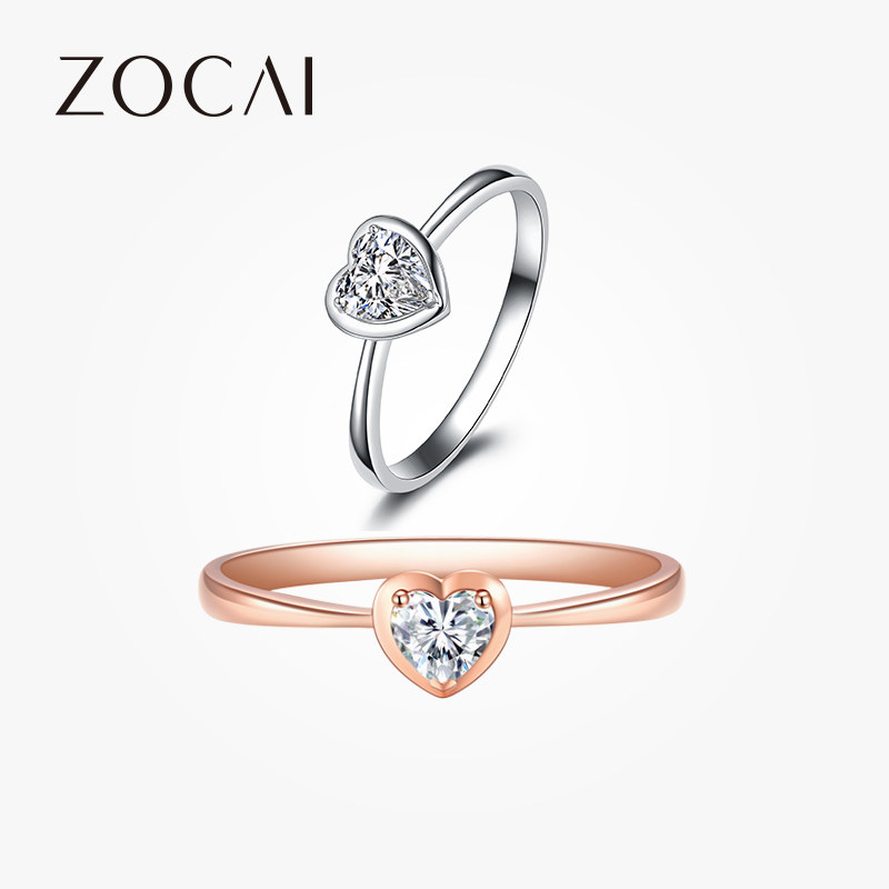 佐卡伊 白18K金心形钻石女戒 求婚钻戒纪念日送女友 情侣爱心戒指