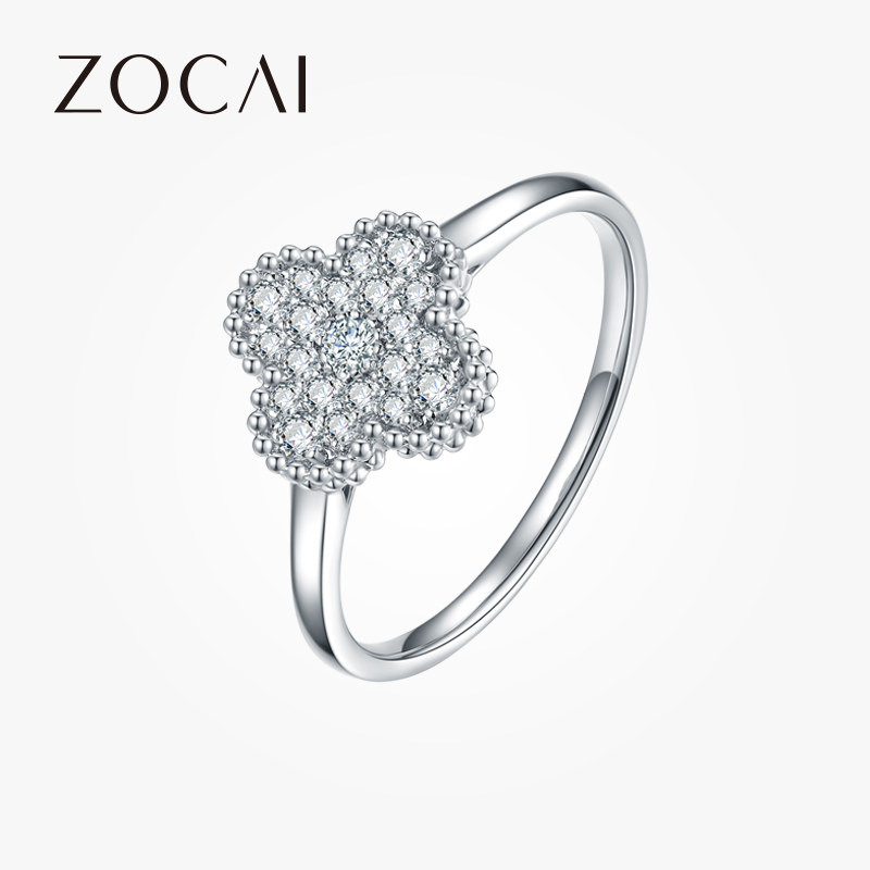 佐卡伊 白18K金钻石戒指 钻石四叶草求婚钻戒 女士定制结婚戒指