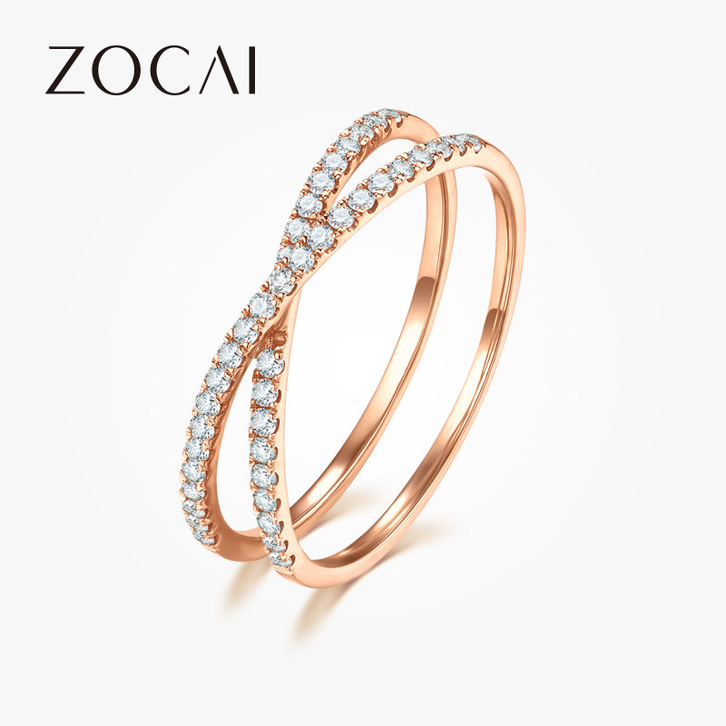 佐卡伊 玫瑰18K金钻石戒指群镶排钻交叉女戒时尚设计感钻戒新品