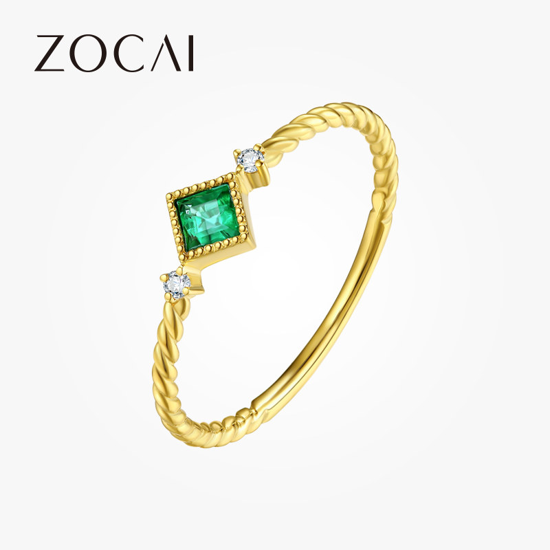 佐卡伊 18K金祖母绿彩色戒指 时尚彩宝镶嵌钻戒女